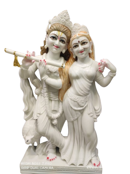 A marble statue of Radha Krishna beautifully represents eternal love, devotion, and divine harmony. The graceful presence of Radha and Krishna together creates a peaceful and spiritually uplifting ambiance in any space. Crafted from high-quality marble, this statue offers both elegance and long-lasting durability. The intricate detailing and lifelike expressions make it a truly captivating piece of art. Ideal for homes, temples, and offices, it enhances positivity and devotion.