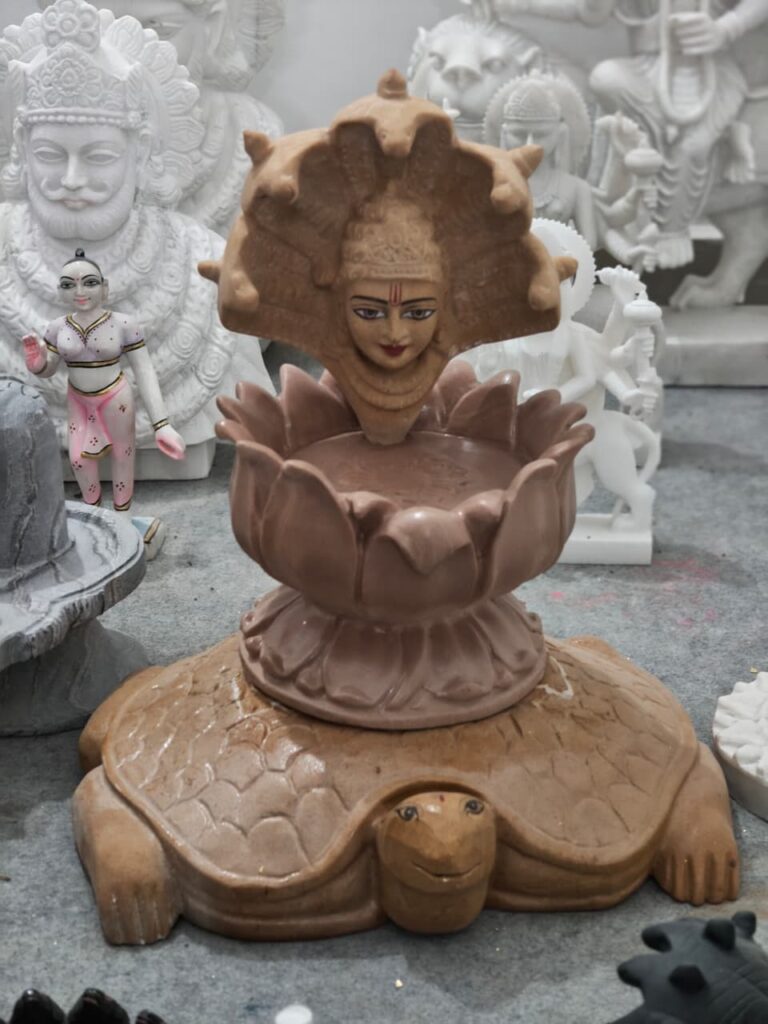 Vandana Murti Arts, we also offer a diverse collection of artistic marble creations beyond traditional idols. Our range includes finely crafted human statues, symbolizing realism and expression, along with decorative pieces like marble turtles and lotus flowers. These designs represent positivity, peace, and good fortune, making them perfect for home décor, gardens, and spiritual spaces. Each piece is carefully handcrafted by skilled artisans using high-quality marble, ensuring durability and a premium finish. Whether you are looking for unique decorative elements or meaningful sculptures, our creations add elegance and artistic charm to every environment.